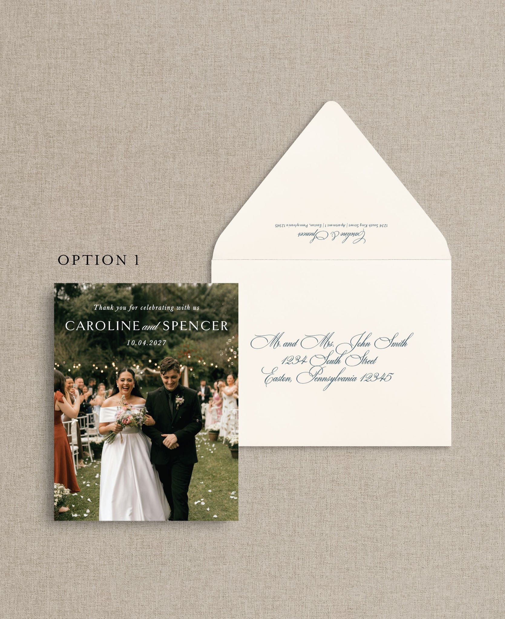 Perfect for post-wedding thank you's, these cards add a personal touch to your sentiments. Show your appreciation in style without taking yourself too seriously. Trust us, your recipients will be smiling from ear to ear long after the celebrations are over!