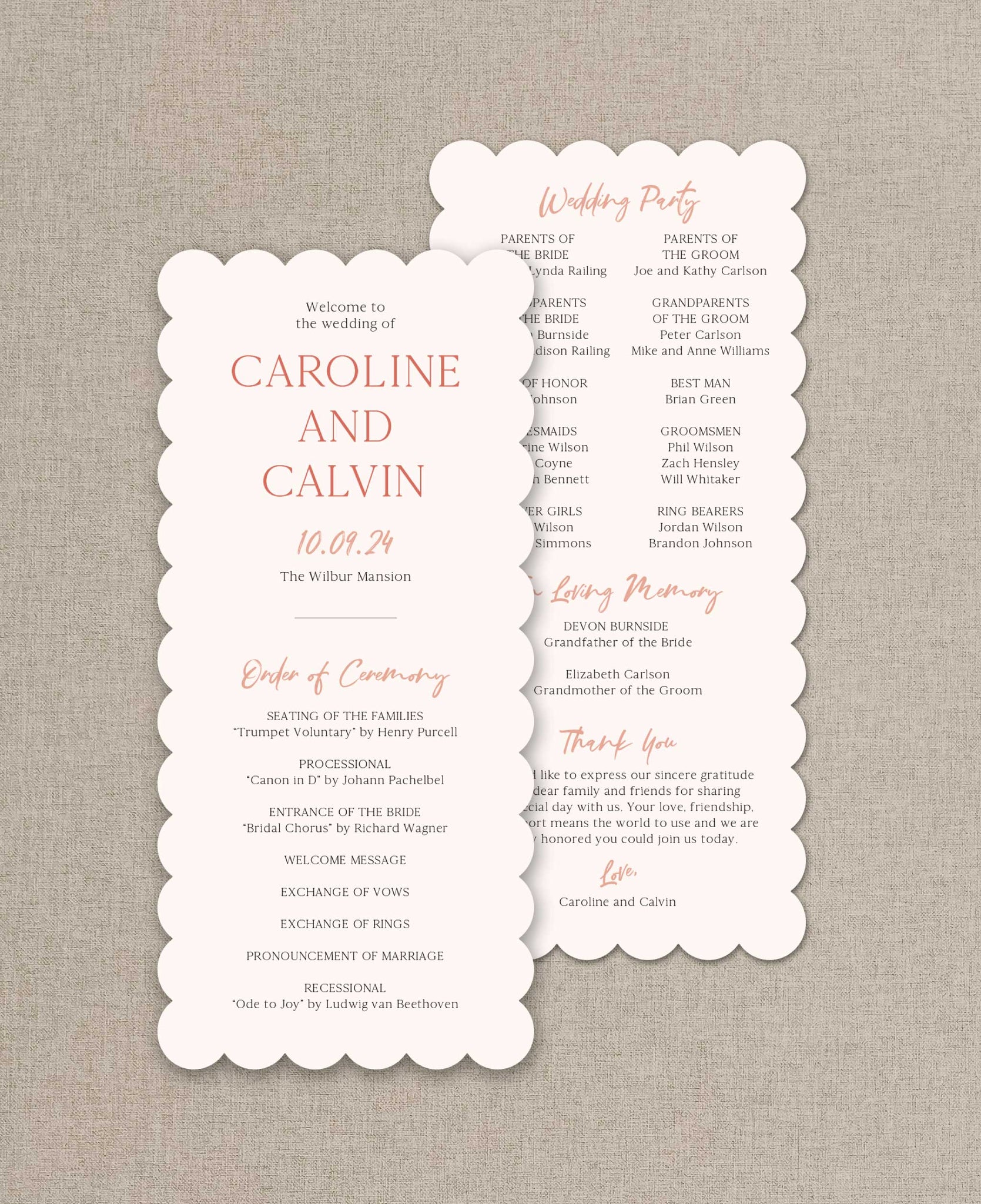 Capture the essence of the season with our exquisite Feminine Terracotta Wedding Ceremony Program. Made from high quality card stock, this program is a beautiful and elegant addition to your special day. A necessary element for any wedding ceremony, it is sure to enhance the overall atmosphere and leave a lasting impression on your guests.