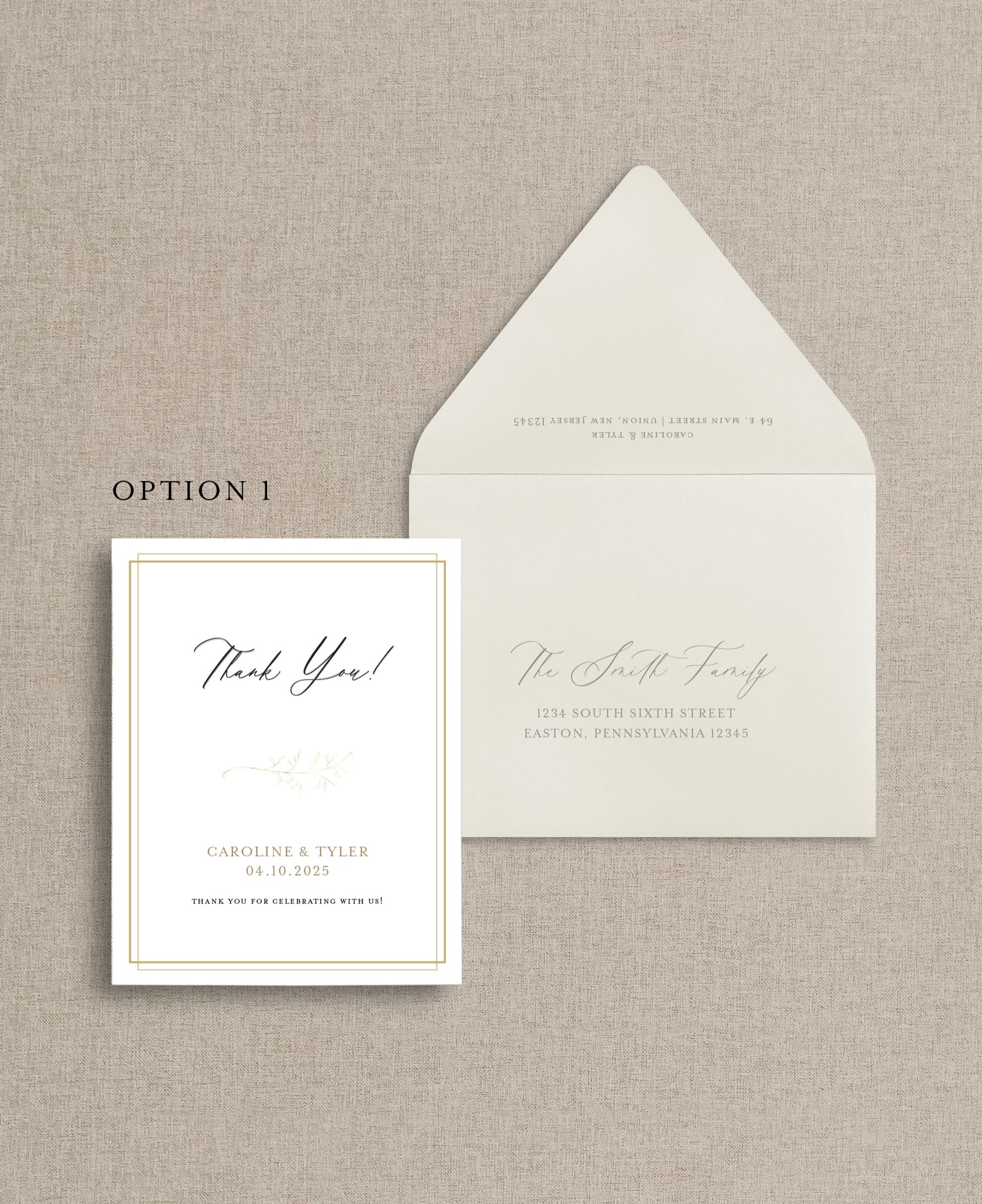 Thank you cards come with blank insides and your guests' addresses printed on all envelopes.
