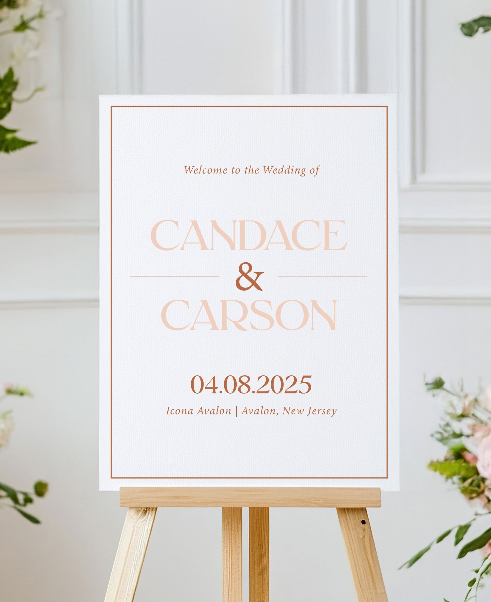 Welcome your guests with an elegant touch using our Rusty Peach Wedding Welcome Sign. Part of our cohesive collection, made of high quality card stock or foam board, this sign adds the perfect touch to your special day. Welcome to a beautifully coordinated wedding!