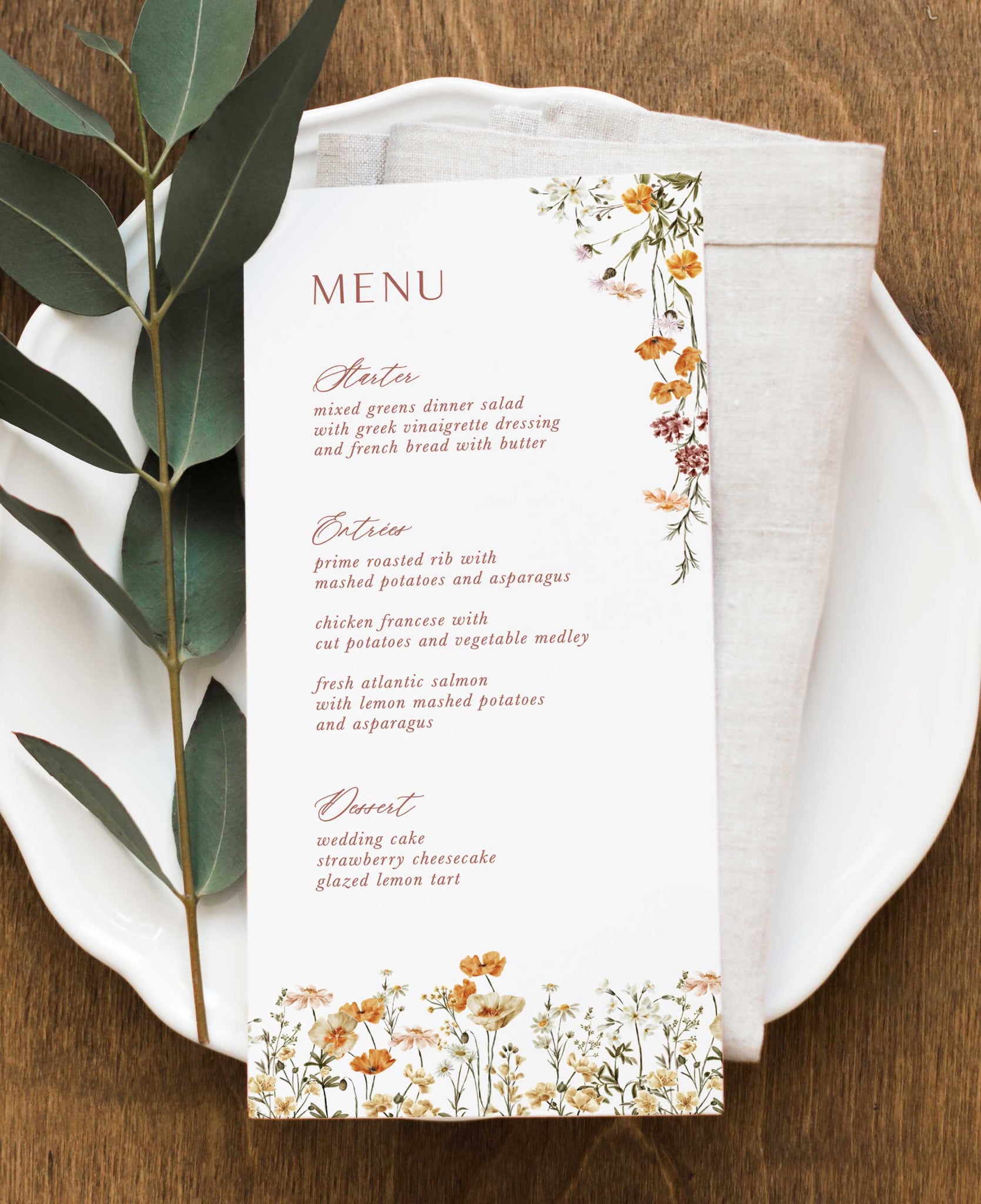 Elevate your wedding dinner with the Tuscany Poppies Wedding Dinner Menu, crafted on high-quality card stock for a luxurious feel. Whether placed individually or one per table, these menus feature premium printing that beautifully showcases your special event’s details. Perfectly designed to complement the bright, fun tones of summer, they add a sophisticated touch that guests will admire throughout your celebration.